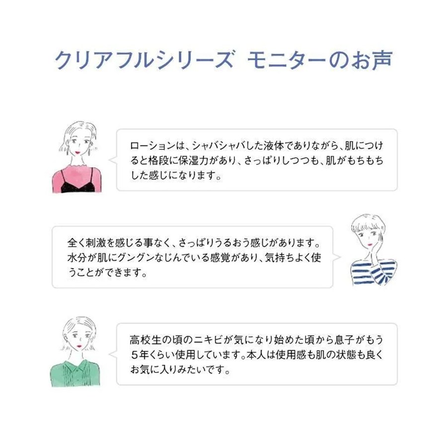 くり返しニキビ(*2)の根本原因「バリア機能の低下」と肌悩み「毛穴目立ち」にWでアプローチするスキンケア「クリアフルシリーズ」の化粧水です。