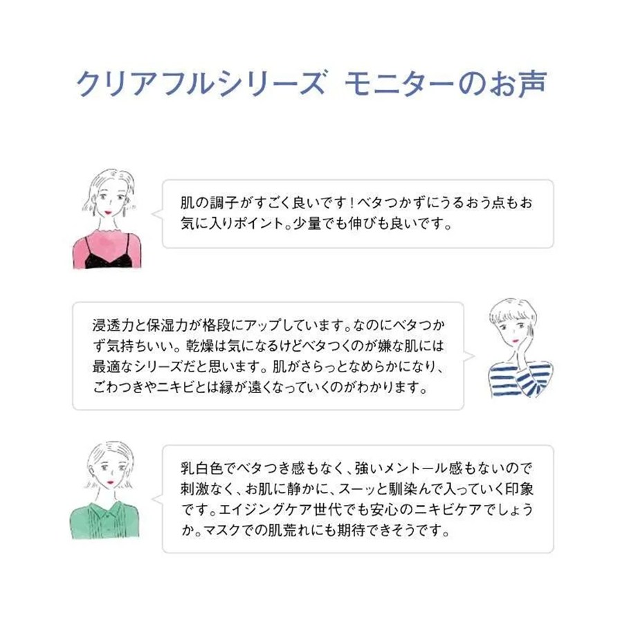 くり返しニキビ(*2)の根本原因「バリア機能の低下」と肌悩み「毛穴目立ち」にWでアプローチするスキンケア「クリアフルシリーズ」の保湿液です。