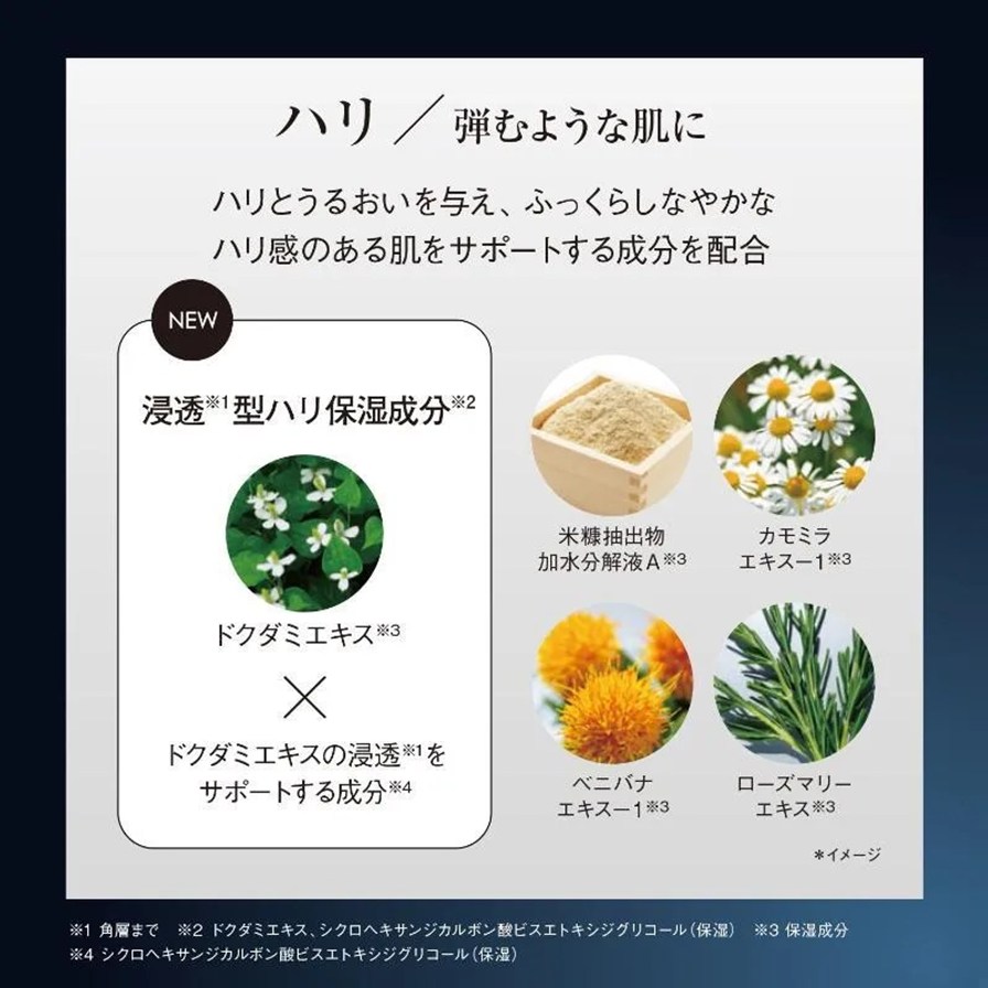 独自研究に基づいた浸透型ハリ保湿成分(*5)で大人肌にハリ感をプラス。