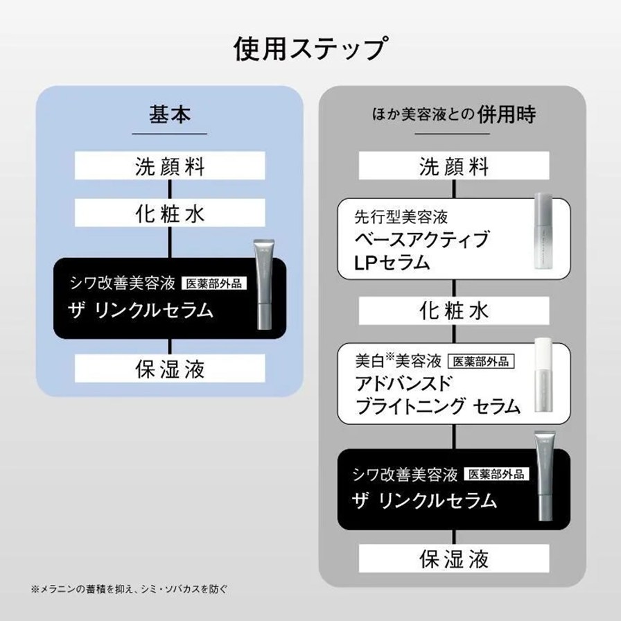速攻浸透(*1)で狙い撃ち!シワ改善×美白(*2)美容液です。
