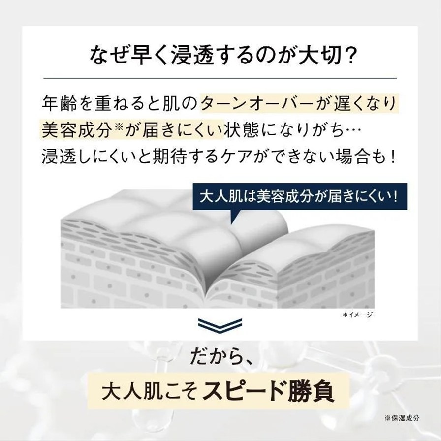さらにポーラ化成 研究所の独自研究で見出した処方を搭載し、浸透しにくい大人肌の深く(*1)まで有効成分を素早く届けます。