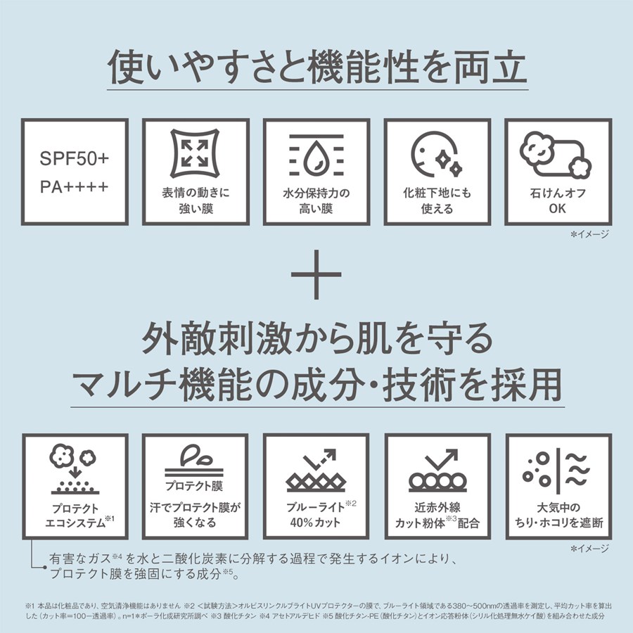 UVカットとエイジングケア(*11)を両立して、外的刺激からもガードする、オルビス最高峰攻めと守り”の日焼け止めです。