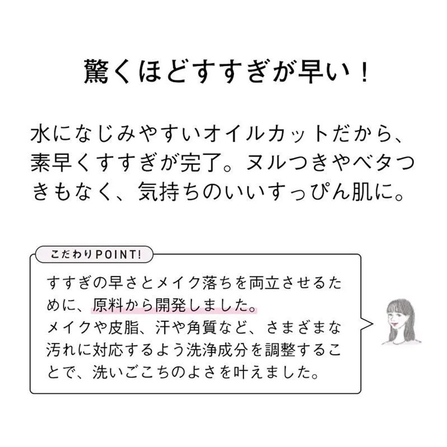 さらに、成分の30%以上が素肌のうるおいバランスを保つ保湿成分なので、ヌルつきのないみずみずしい快適な洗い上がりです。