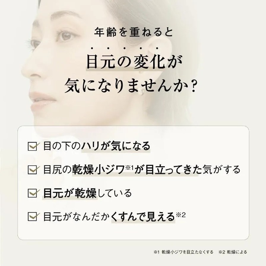 夜のスキンケアの最後にプラスすることで乾燥による小ジワを目立たなくし、ハリ感みなぎる目元を目指します。