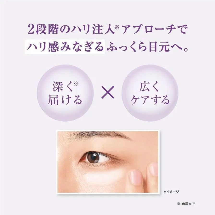 目元悩みをマルチにケアするレチノールと、ハリ感をサポートするペプチド(*2)の2種の成分が深いうるおいを与え、湧き上がるようなハリ感を呼び覚まします。